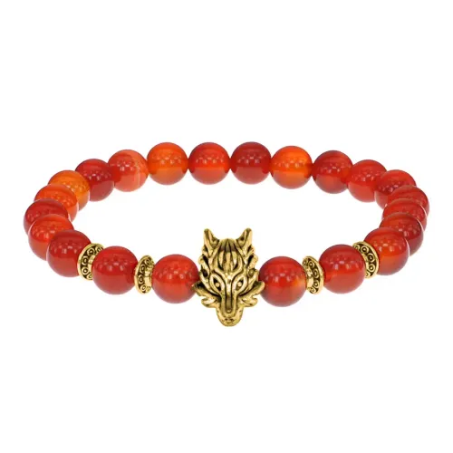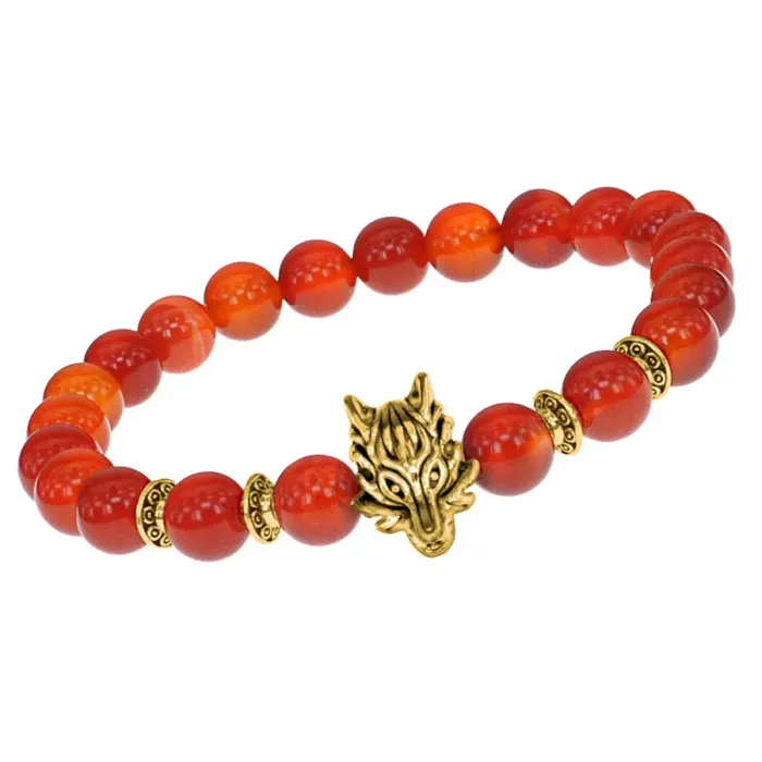 Браслет-амулет Волк с нат.камнем Сердолик 8мм BSHE-10-17G