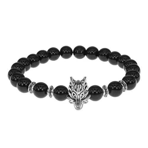 Браслет-амулет Волк с нат. камнем Черный агат 8мм BSHE-10-23S