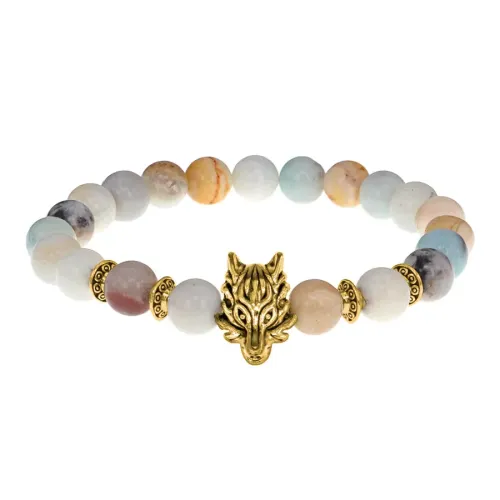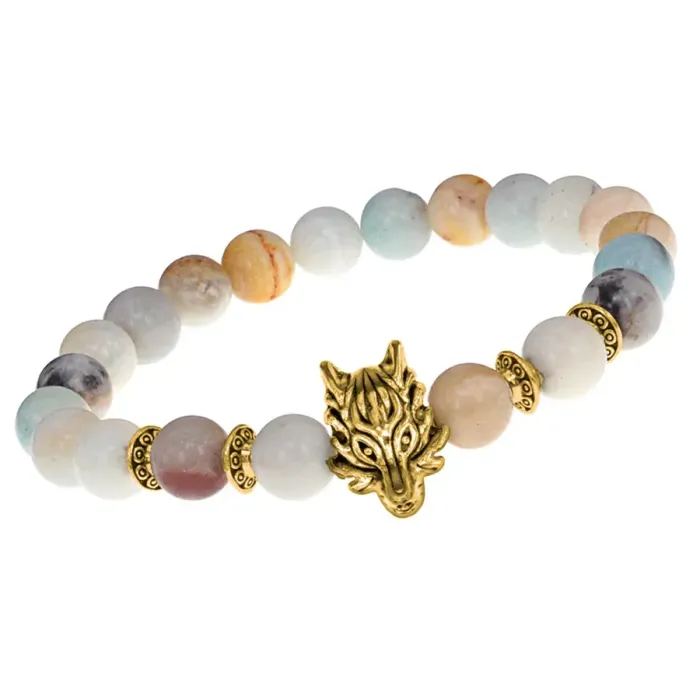 Браслет-амулет Волк с нат.камнем Амазонит 8мм BSHE-10-26G