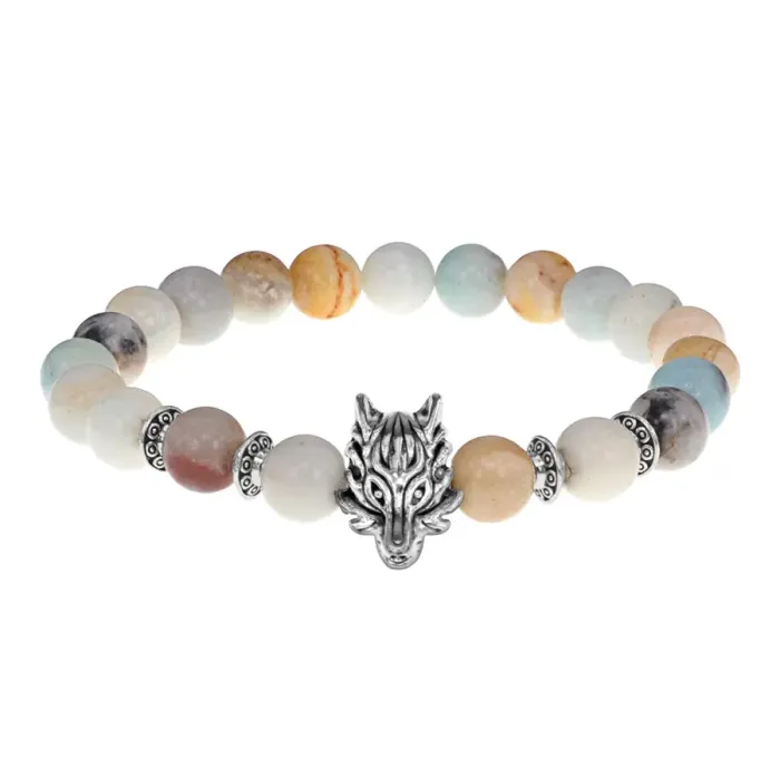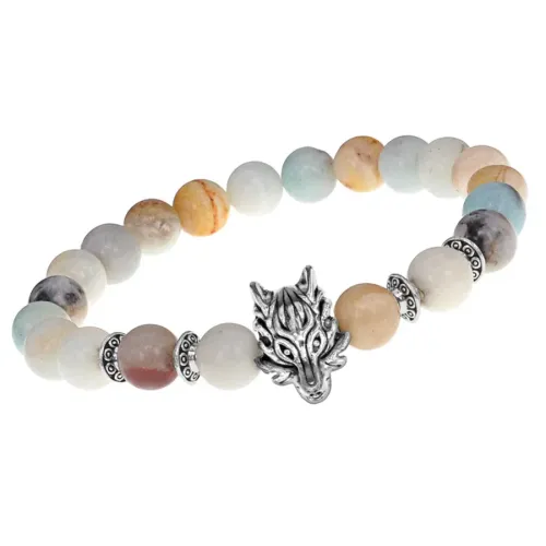 Браслет-амулет Волк с нат. камнем Амазонит 8мм BSHE-10-26S