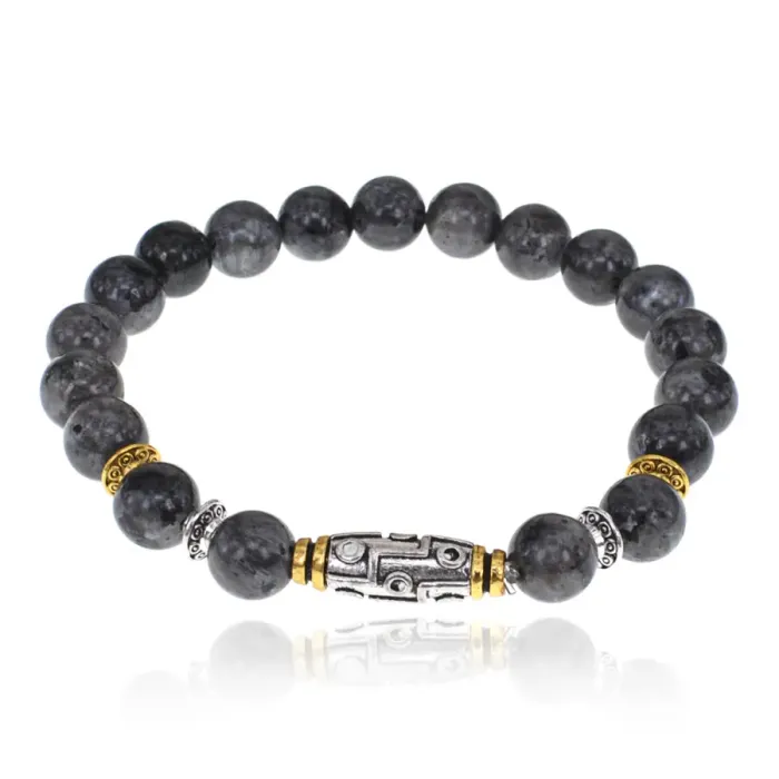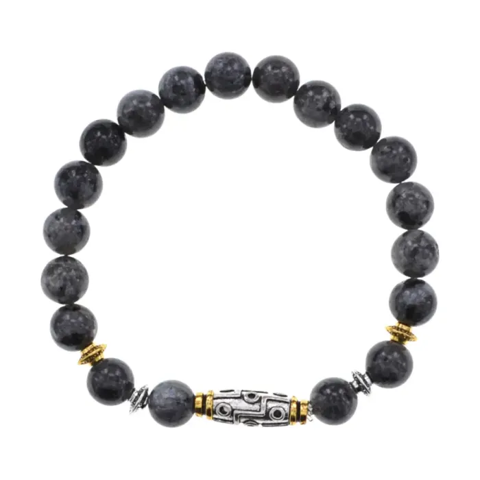 Стрейч-браслет с девятиглазой бусиной Дзи и натуральным камнем лабрадор.