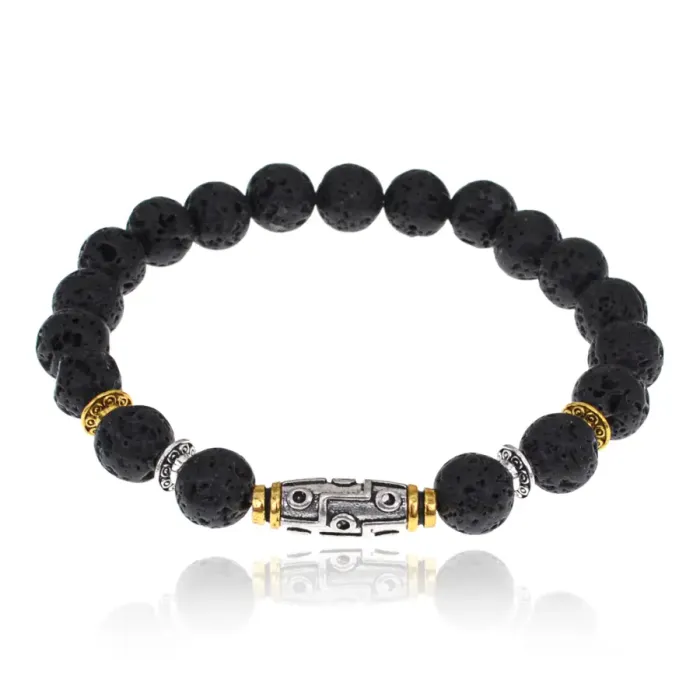 Браслет с 9-глазой бусиной Дзи, нат.камень Лава 8мм BSHE-11-09