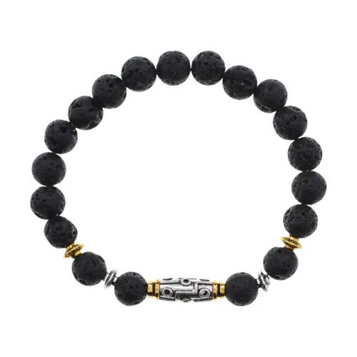 Материал и изготовление: Бусины из натурального камня лава (базальт) диаметром 8 мм. Центральная бусина Дзи изготовлена из бижутерного сплава.