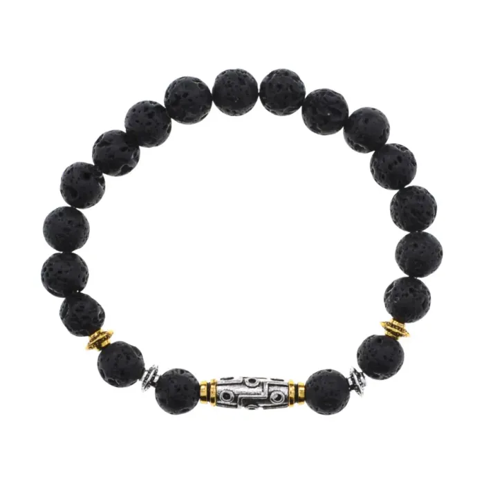 Стрейч-браслет для ношения на запястье с девятиглазой бусиной Дзи и бусинами из натурального камня лава.