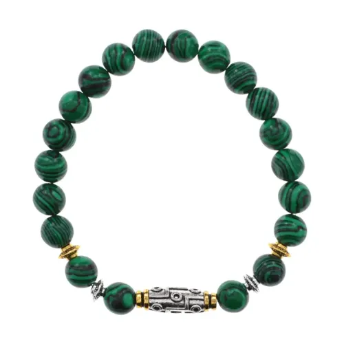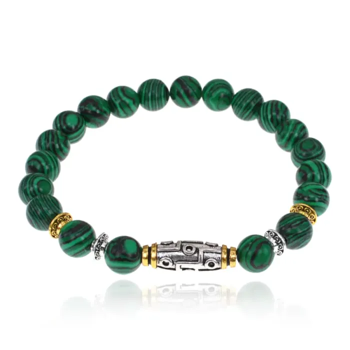 Браслет с 9-глазой бусиной Дзи, синт.камень Малахит 8мм BSHE-11-12
