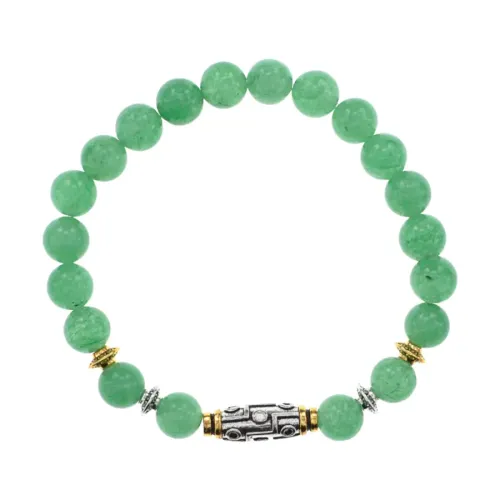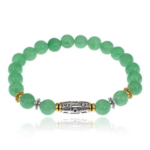 Стрейч-браслет с бусиной Дзи и натуральным нефритом. Бусины диаметром 8 мм.