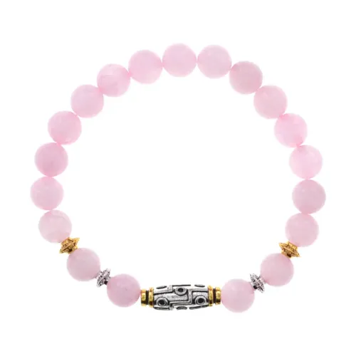 Стрейч-браслет с бусиной Дзи и натуральным камнем розовый кварц.