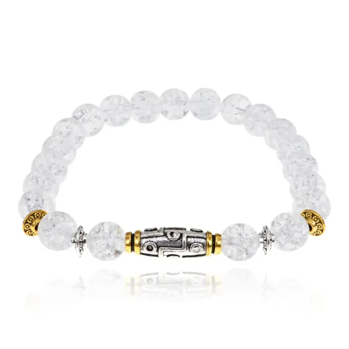 Браслет с бусиной Дзи из бижутерного сплава и синтетического сахарного кварца.