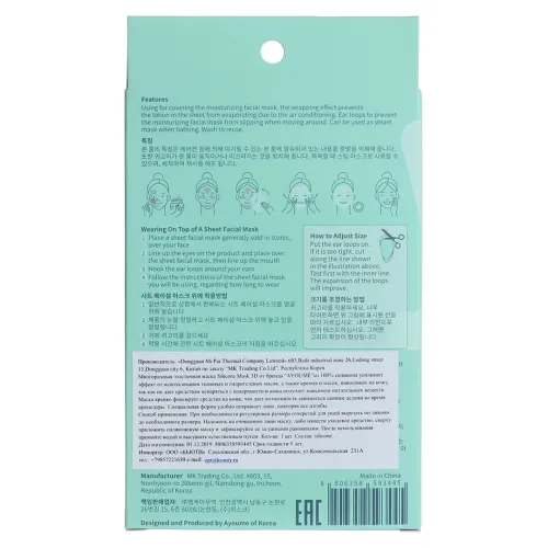 - Отверстия для ушей надёжно фиксируют маску на лице.