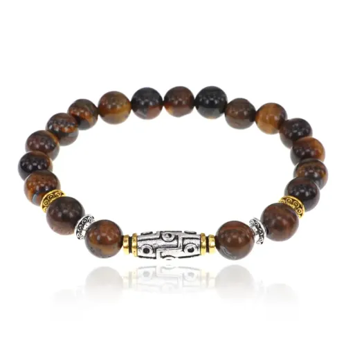 Браслет с 9-глазой бусиной Дзи, нат.камень Тигровый глаз 8мм BSHE-11-19