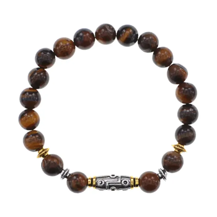 Стрейч-браслет с бусиной Дзи и натуральным камнем тигровый глаз.