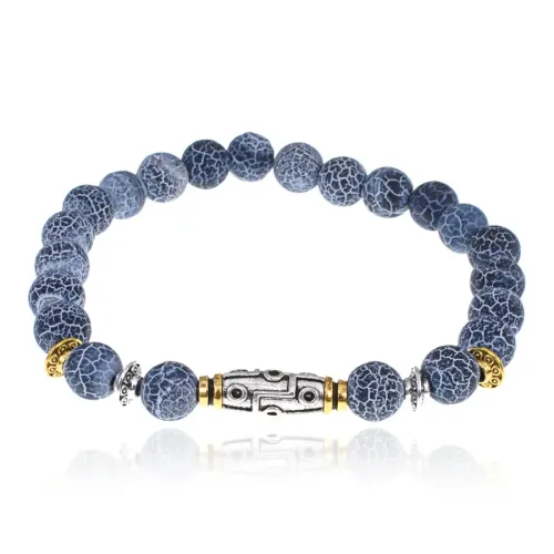 Стрейч-браслет с девятиглазой бусиной Дзи и бусинами из натурального синего африканского агата.