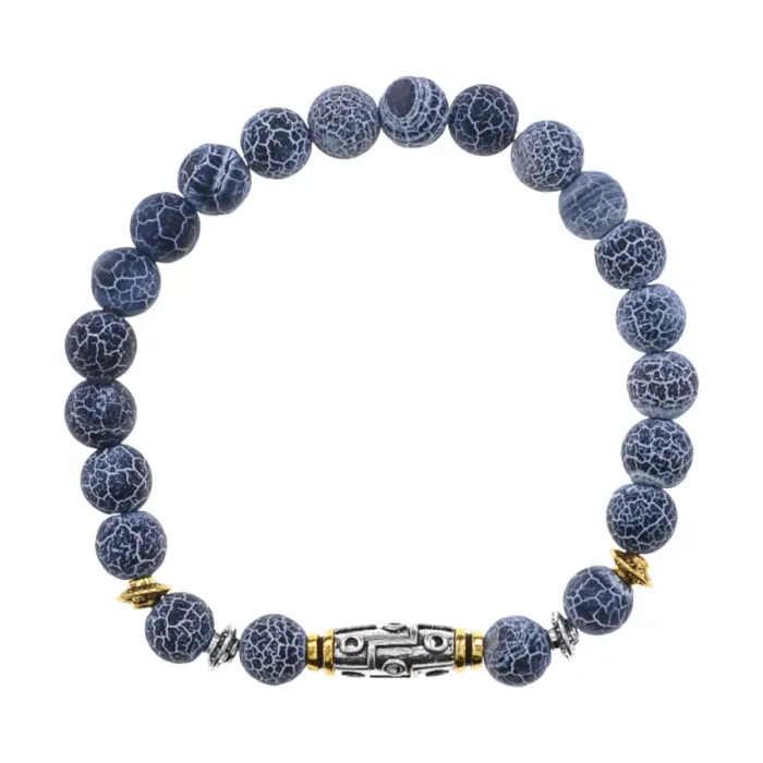 Браслет с 9-глазой бусиной Дзи, нат.камень Синий Африк. агат 8мм BSHE-11-27