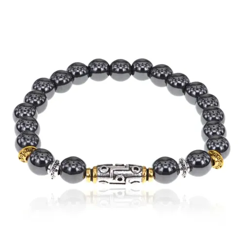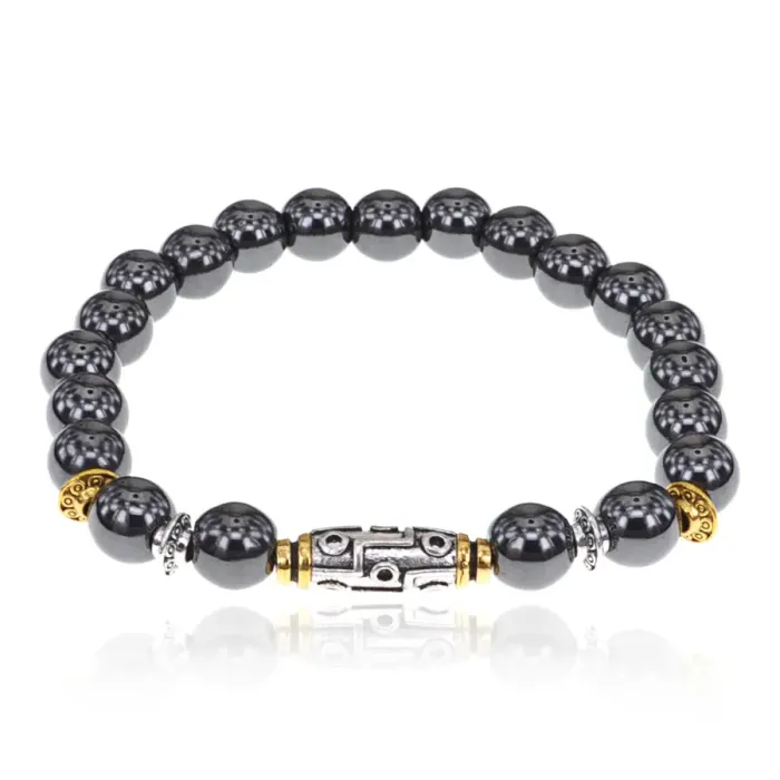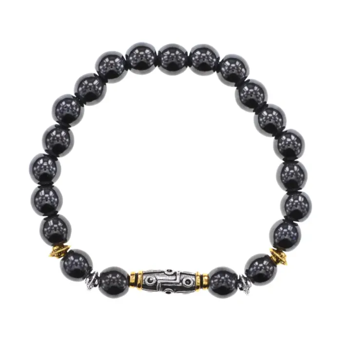 Стрейч-браслет с бусиной Дзи и синтетическим гематитом.