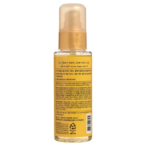 Восстанавливающее масло для волос EGG PLANET Keratin Repair Hair Oil — это средство, созданное для ухода за повреждёнными волосами. Формула масла обогащена кератином, аргановым маслом, миндальным маслом и маслом камелии. Эти компоненты помогают восстановить структуру волос и заполнить повреждённые участки, придавая им здоровый вид.