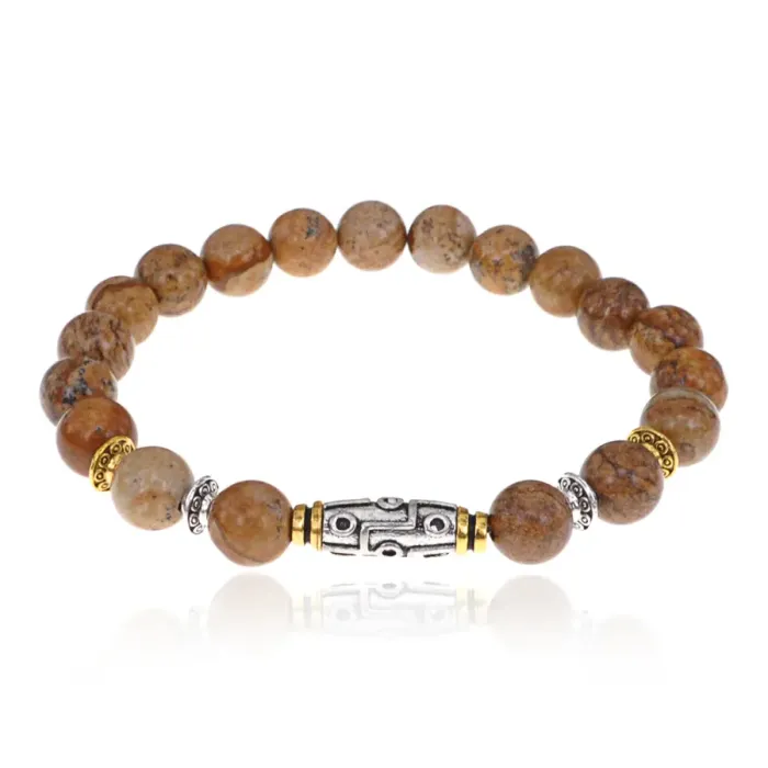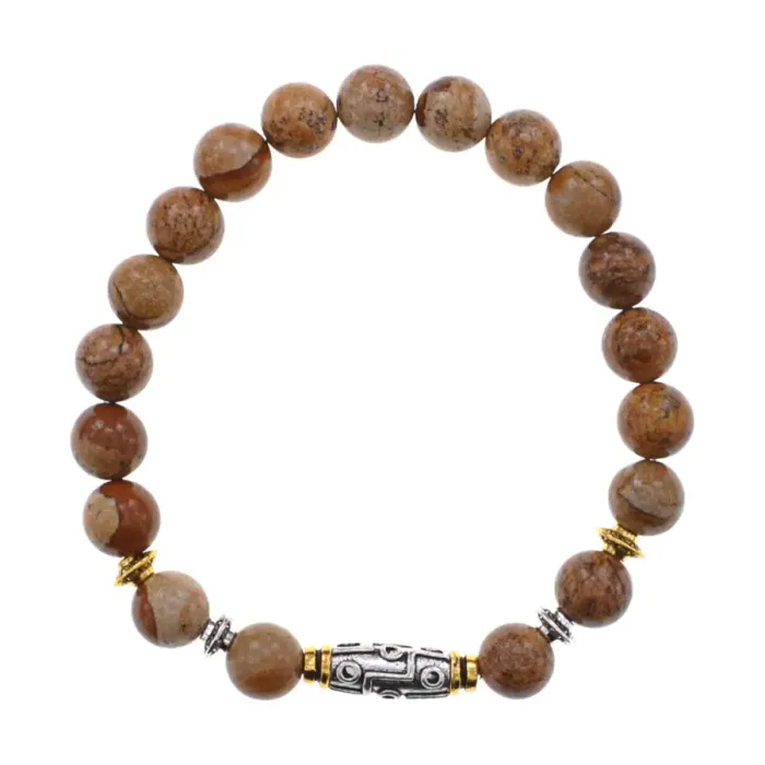 Браслет с 9-глазой бусиной Дзи, нат.камень Песочная яшма 8мм BSHE-11-30