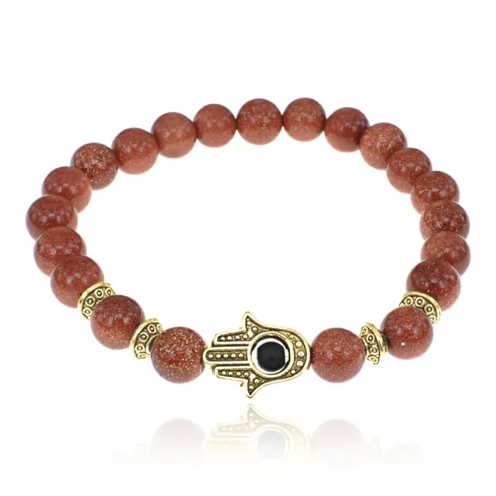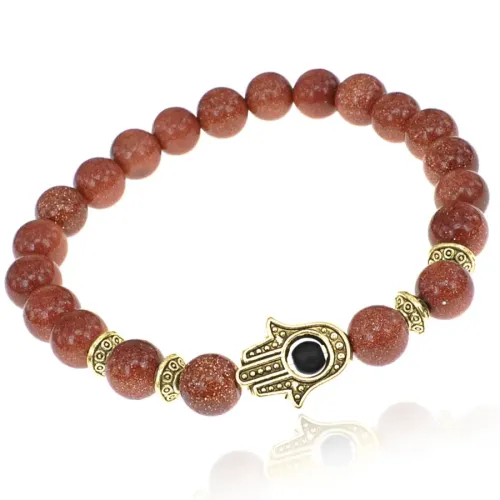 Браслет-амулет Хамса с синт. камнем Коричневый авантюрин 8мм BSHE-G-01