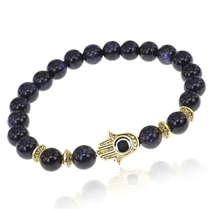 Браслет-амулет Хамса с синт. камнем Синий авантюрин 8мм BSHE-G-02