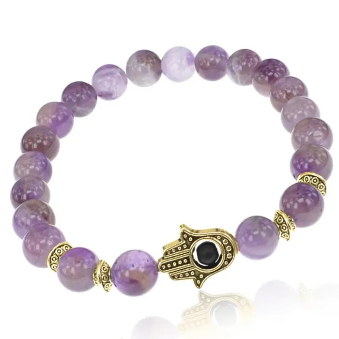 Браслет-амулет Хамса с нат. камнем Аметист 8мм BSHE-G-03