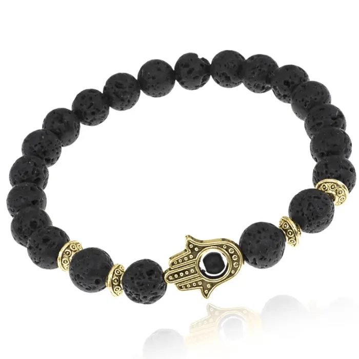 Браслет-амулет Хамса с нат. камнем Лава 8мм BSHE-G-09