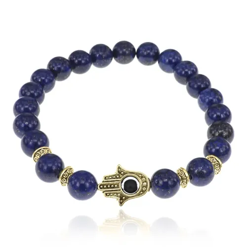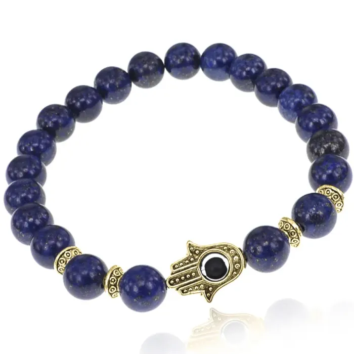 Браслет-амулет Хамса с нат. камнем Лазурит 8мм BSHE-G-10