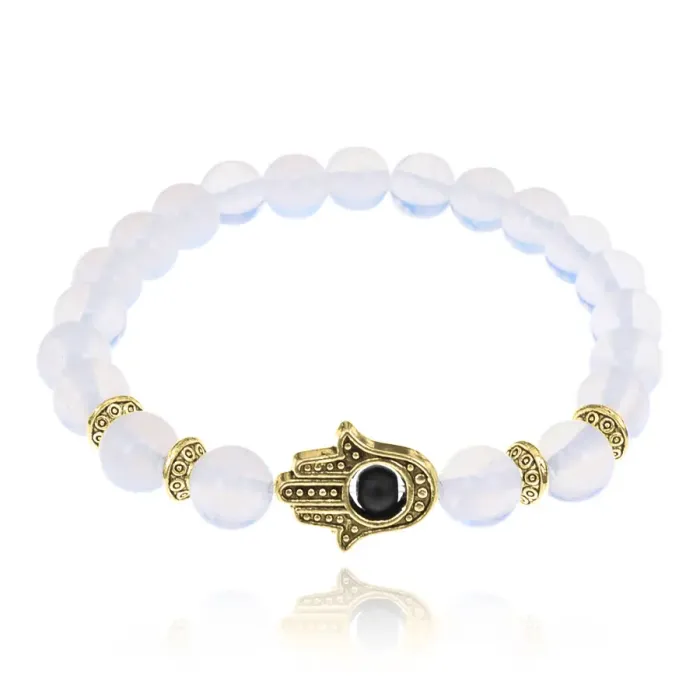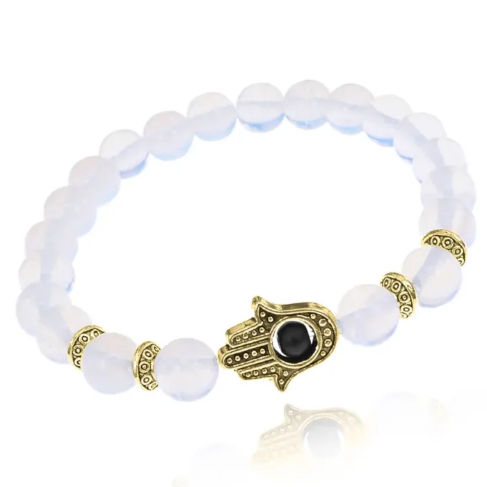 Браслет-амулет Хамса с синт. камнем Лунный камень 8мм BSHE-G-11