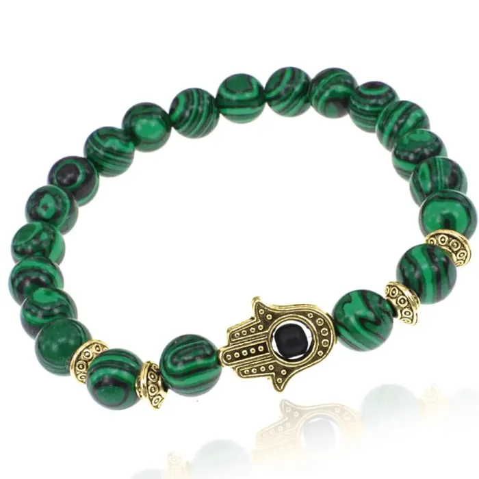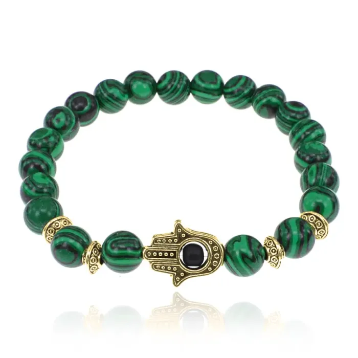 Браслет-амулет Хамса с синтетическим камнем Малахит 8мм BSHE-G-12