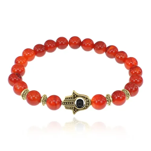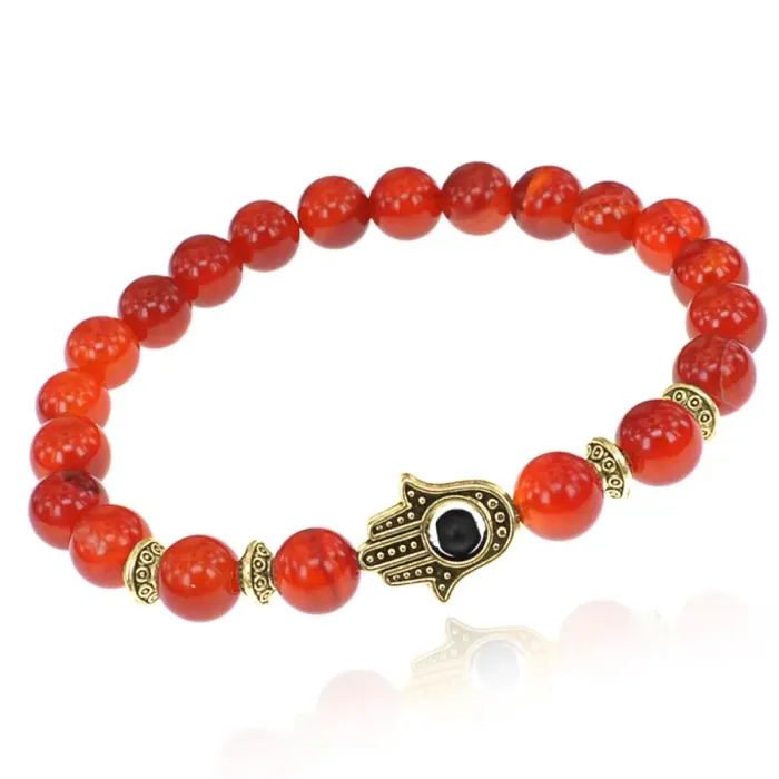 Браслет-амулет Хамса с нат. камнем Сердолик 8мм BSHE-G-17
