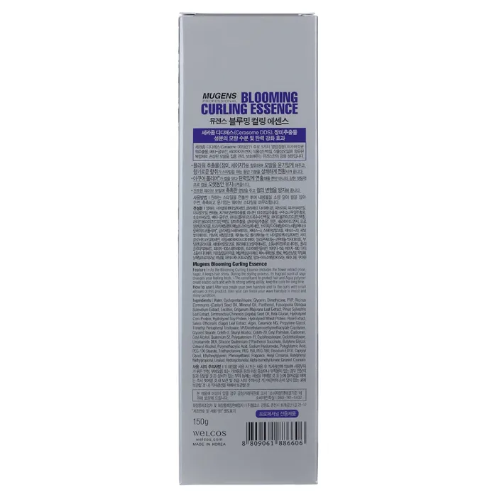 Эссенция для вьющихся волос Mugens Blooming Curling Essence от Welcos — это специализированное средство, созданное для ухода и укладки вьющихся и волнистых волос. Продукт обогащён цветочным экстрактом, который не только придаёт локонам приятный аромат, но и делает их блестящими. Эссенция содержит пять активных компонентов: бета-глюкан, экстракт чаги, керамид, растительный белок и растительные экстракты. Эти ингредиенты обеспечивают защиту волосам, повышают их эластичность и помогают сохранить форму завитков.