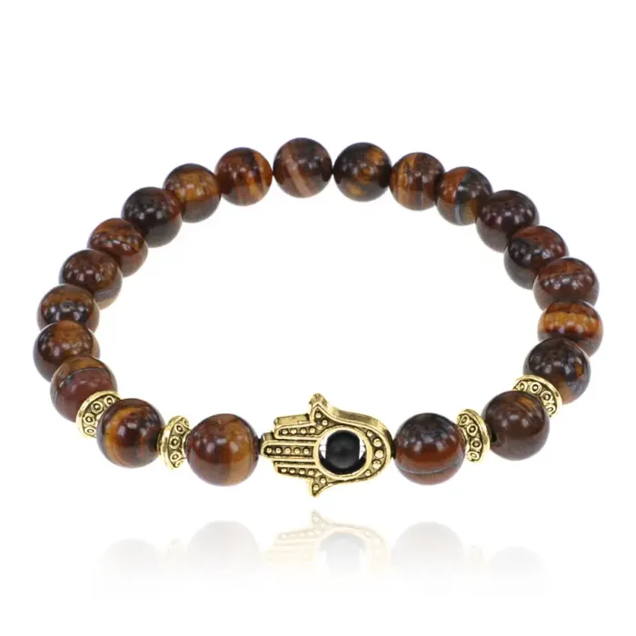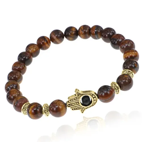 Браслет-амулет Хамса с нат. камнем Тигровый глаз 8мм BSHE-G-19