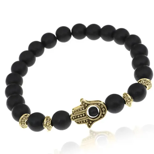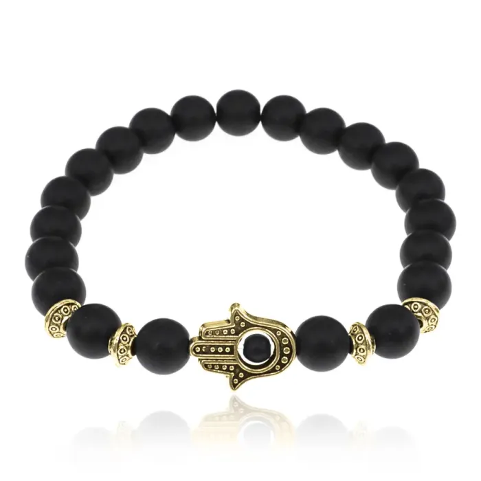 Браслет-амулет Хамса с синтетическим камнем Шунгит 8мм BSHE-G-24
