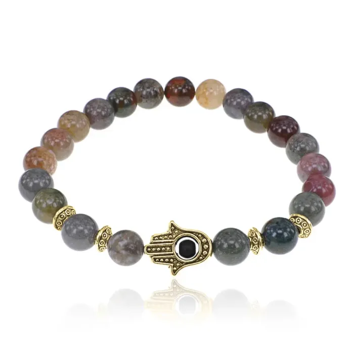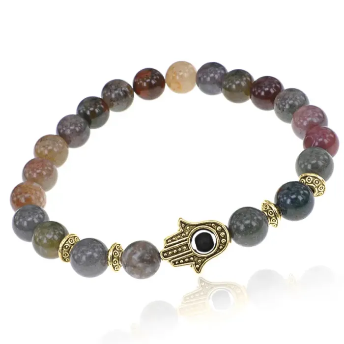 Браслет-амулет Хамса с нат. камнем Яшма 8мм BSHE-G-25