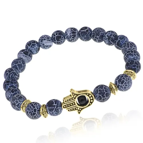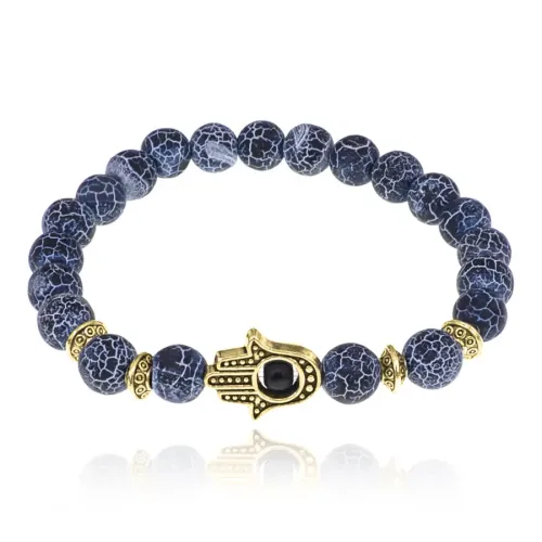 Браслет-амулет Хамса с нат.камнем синий Африканский агат 8мм BSHE-G-27