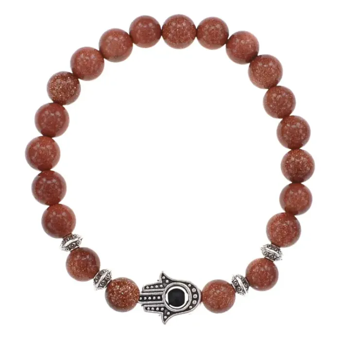 Браслет-амулет Хамса с синт. камнем Коричневый авантюрин 8мм BSHE-S-01