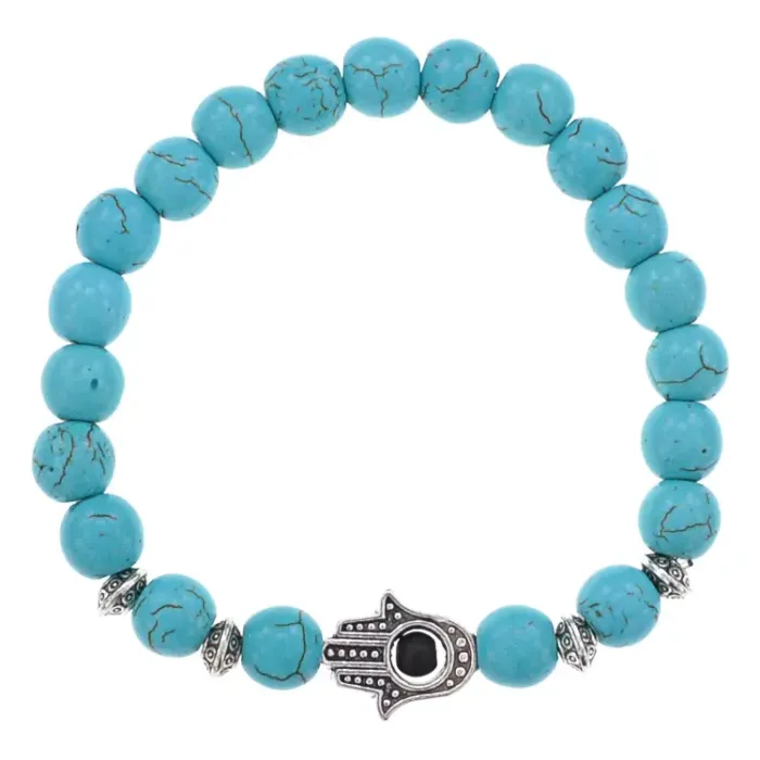 Браслет-амулет Хамса с синт. камнем Бирюза 8мм BSHE-S-05