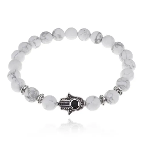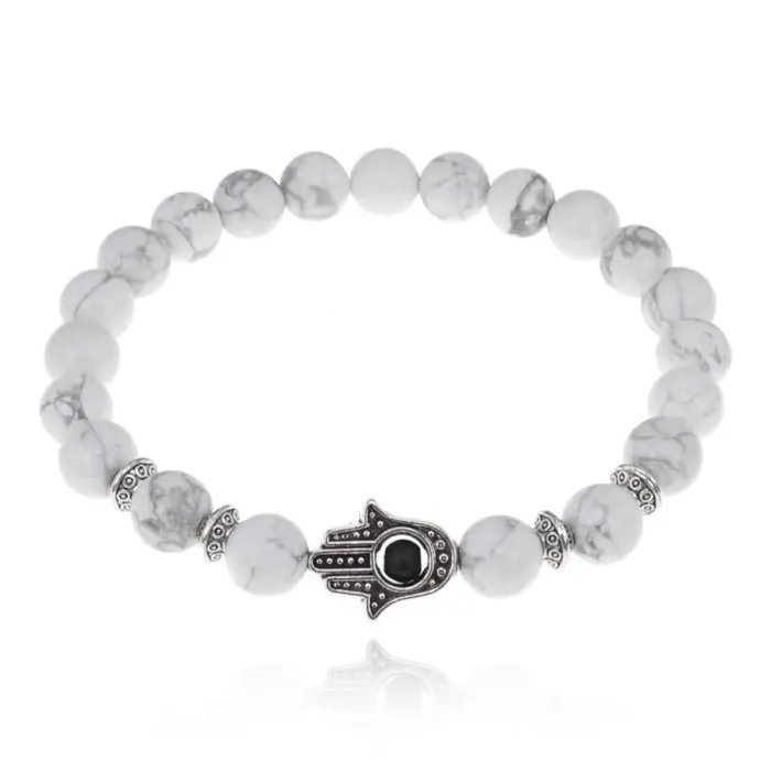 Браслет-амулет Хамса с нат. камнем Кахолонг 8мм BSHE-S-07