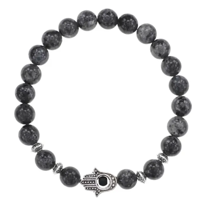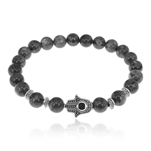 Браслет-амулет Хамса с нат.камнем Лабрадор 8мм BSHE-S-08
