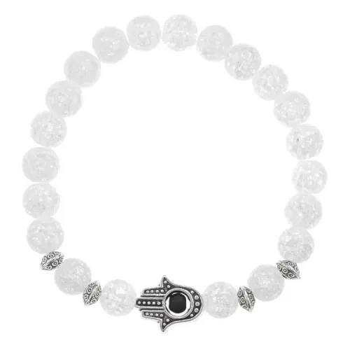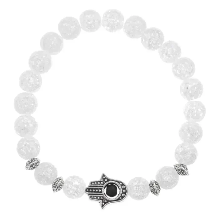 Браслет-амулет Хамса с синт. камнем Сахарный кварц 8мм BSHE-S-16