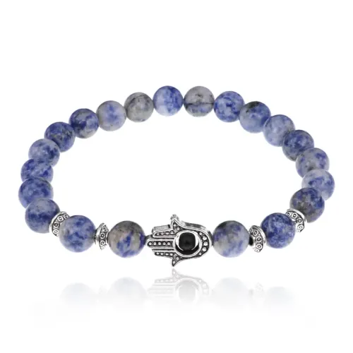 Браслет-амулет Хамса с нат. камнем Содалит 8мм BSHE-S-18