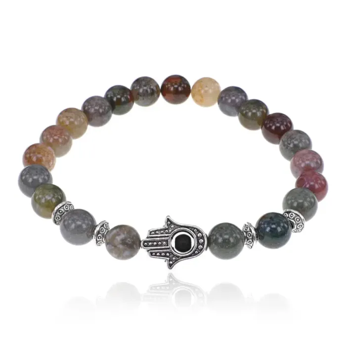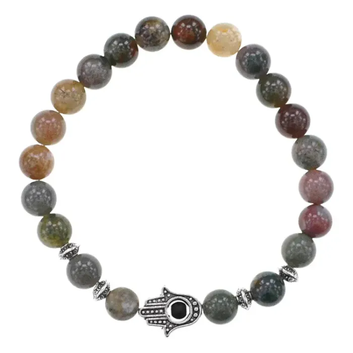 Браслет-амулет Хамса с нат. камнем Яшма 8мм BSHE-S-25