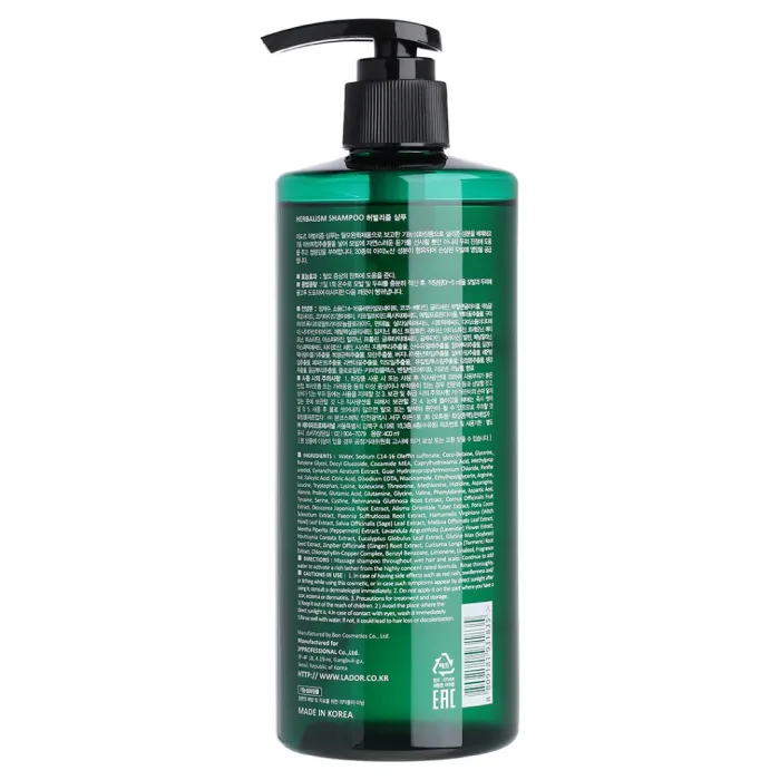 Слабокислотный травяной шампунь с аминокислотами Herbalism Shampoo 400 мл Lador