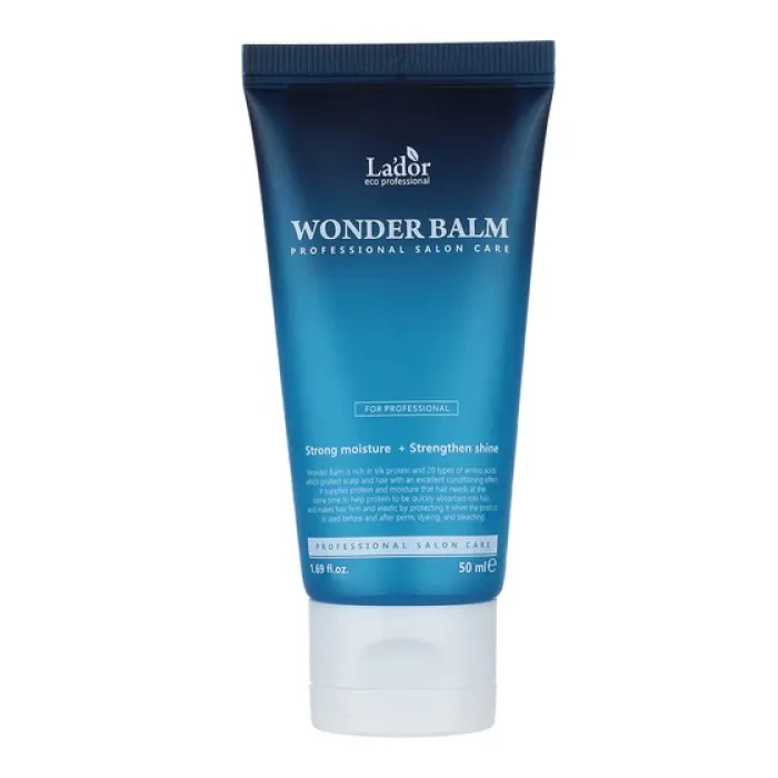 Wonder Balm от Lador — это увлажняющий экспресс-бальзам для волос, обогащённый шёлковыми протеинами и 20 видами аминокислот. Он предназначен для быстрого восстановления и увлажнения волос, придавая им здоровый блеск и сияние. Бальзам эффективно кондиционирует волосы всего за 50 секунд, защищая их от негативного воздействия солнечных лучей и химических агентов.