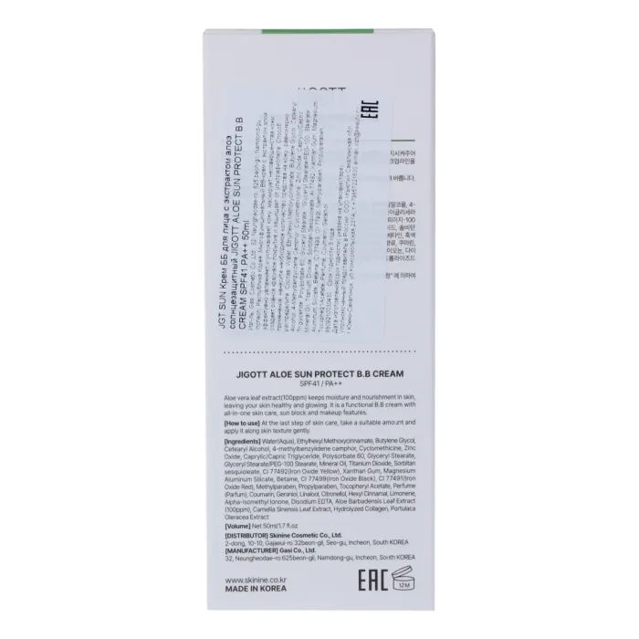 Крем ББ для лица с экстрактом алоэ солнцезащитный, ALOE SUN PROTECT B.B CREAM SPF41 PA++ 50 мл Jigott