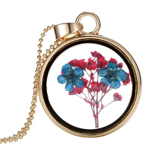 Кулон с сухими цветами внутри. Металл с золотым покрытием.