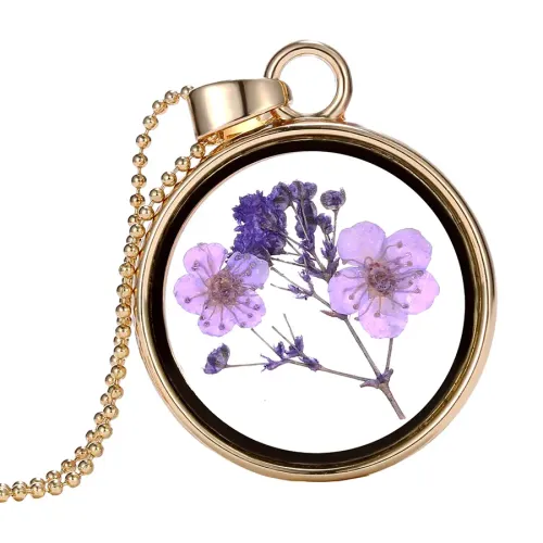 Кулон Икебана — это изысканный аксессуар, который сочетает в себе красоту природы и утончённый стиль. Этот кулон выполнен из металла с покрытием под золото и украшен сухими цветами внутри, что придаёт ему уникальность и шарм.