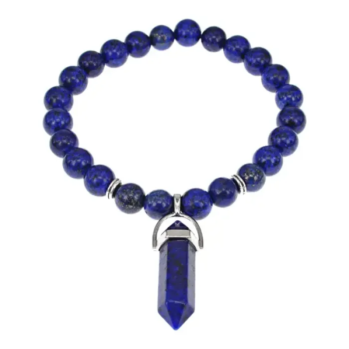 Стрейч-браслет с кристаллом из натурального камня лазурит. Размер бусин 8 мм.