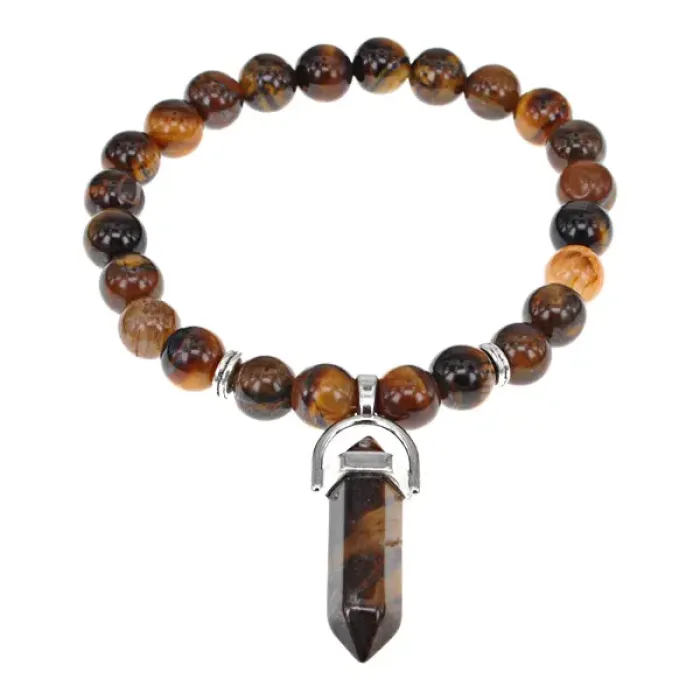 Стрейч-браслет с кристаллом из натурального камня тигровый глаз. Диаметр бусин 8 мм.