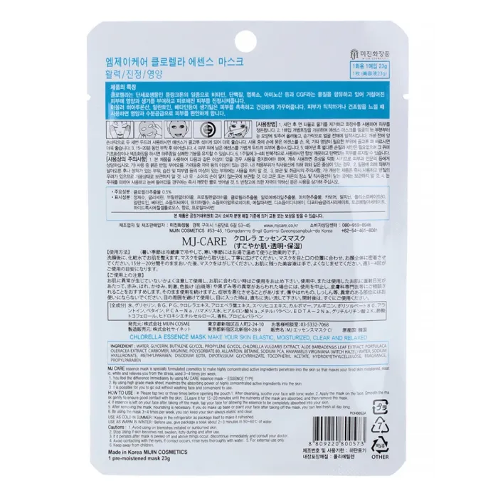Chlorella Essence Mask от Mijin — это тканевая маска для лица, разработанная для интенсивного ухода и восстановления кожи. Подходит для всех типов кожи, особенно рекомендуется для чувствительной и уставшей. Маска эффективно увлажняет и смягчает кожу, предотвращая воспалительные процессы и замедляя процесс старения.