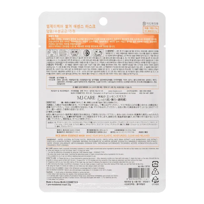Маска тканевая для лица Rice Bran Essence Mask от MIJIN COSMETICS разработана для интенсивного ухода за кожей. Она помогает справляться с различными проблемами кожи и поддерживать её здоровье. Масло рисовых отрубей, входящее в состав маски, богато витаминами и натуральными антиоксидантами, которые активизируют синтез коллагена и гиалуроновой кислоты. Это способствует улучшению состояния кожи.