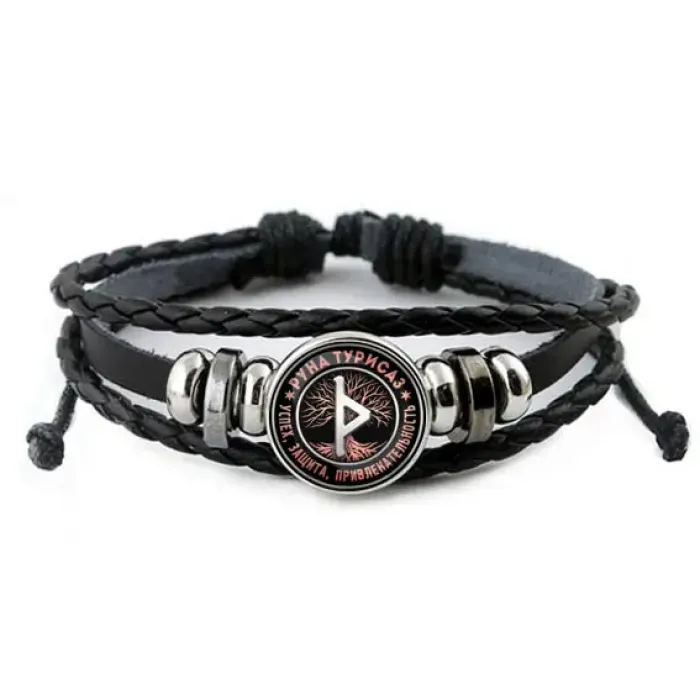 Кожаный браслет Руна Турисаз BSK-0344